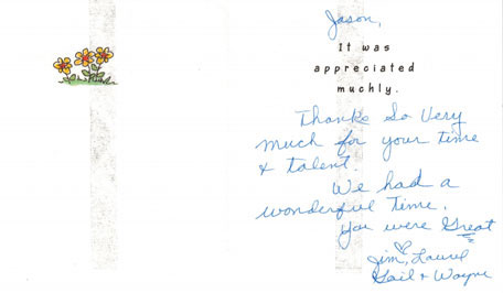 Thanks so very much for your time and talent. We had a wonderful time. Your were great!